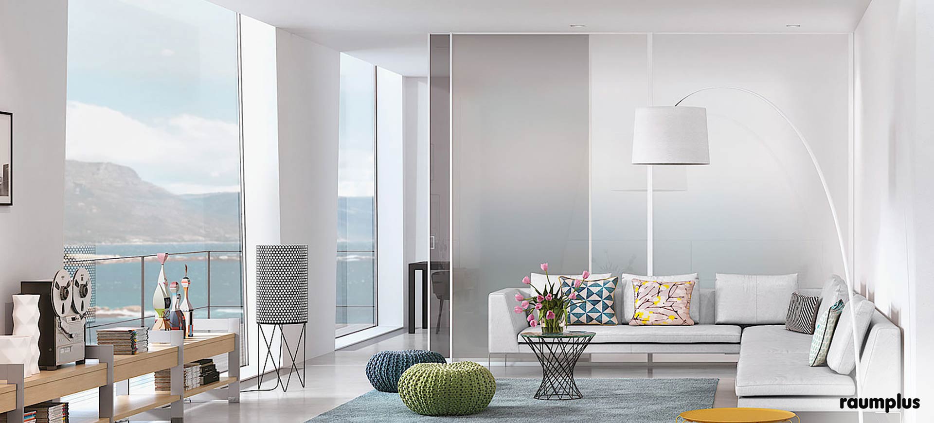 Große Räume lassen sich mit Raumteilern von Raumsystem nach Belieben öffnen und schließen, ohne dass die Großzügigkeit und Transparenz des Raumes verloren geht. Raumsystem-Raumteiler passen sich jedem Zimmer an. Sie können ohne irgendeine Beeinträchtigung oder Veränderung der Räume jederzeit maßgeschneidert montiert werden.