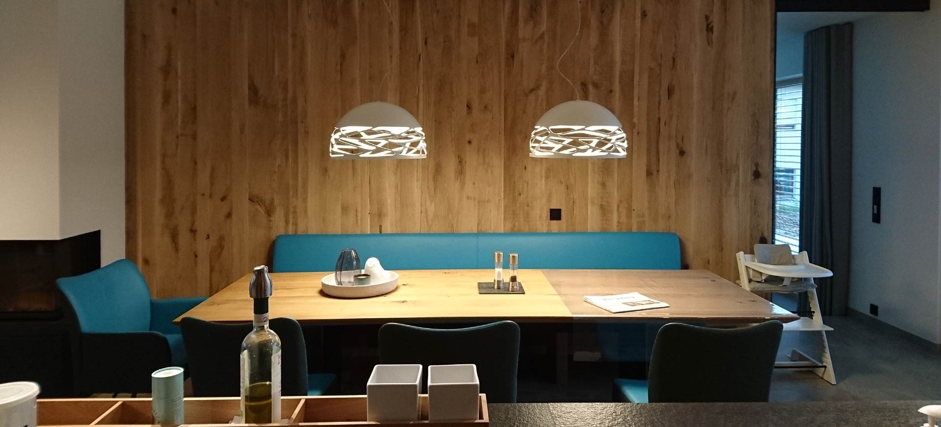 Wir fertigen individuelle und qualitativ hochwertige Möbel auch komplett in unserer eigenen Schreinerei. Ob passgenaue und kreative Bäder, Ankleiden, Regale, Wohnzimmer, Tische, Betten, Küchen oder Einbaumöbel in Massivholz, Dekor, Lack, Öl, Metall, Glas oder Stein – alles ist möglich.